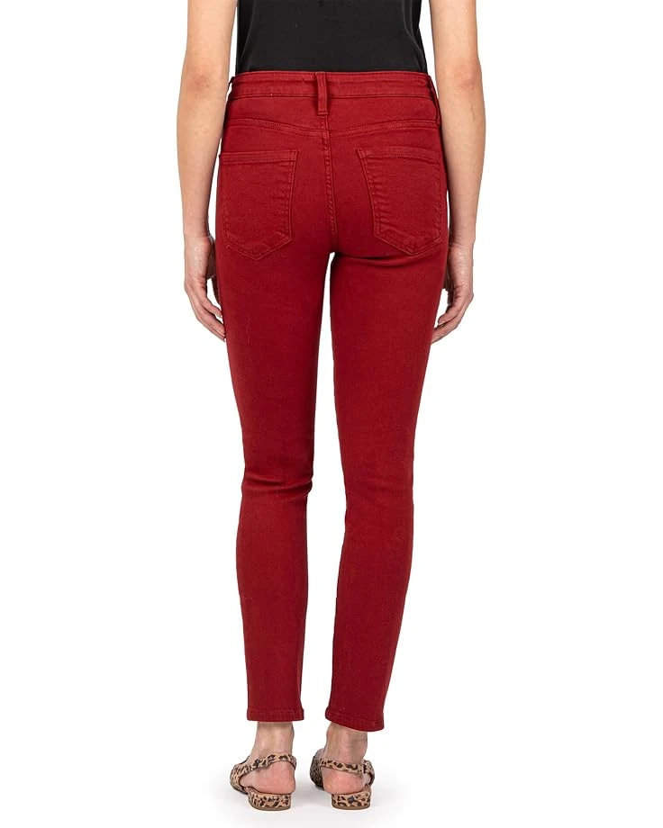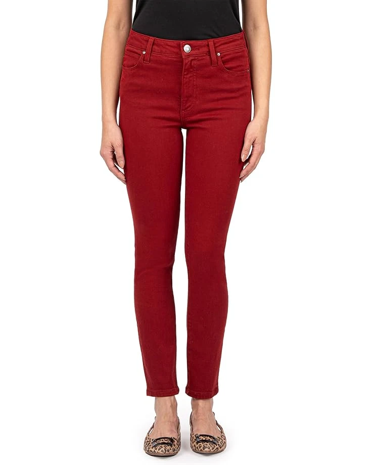 - Make your everyday, casual looks more stylish wearing KUT from the Kloth™ Charlize High-Rise Cigarette Leg With Regular Hem In Red. The high-rise, dark wash jeans features a zip-fly & button closure, belt loops, five-pocket design, and a skinny fit with an ankle-length silhouette.