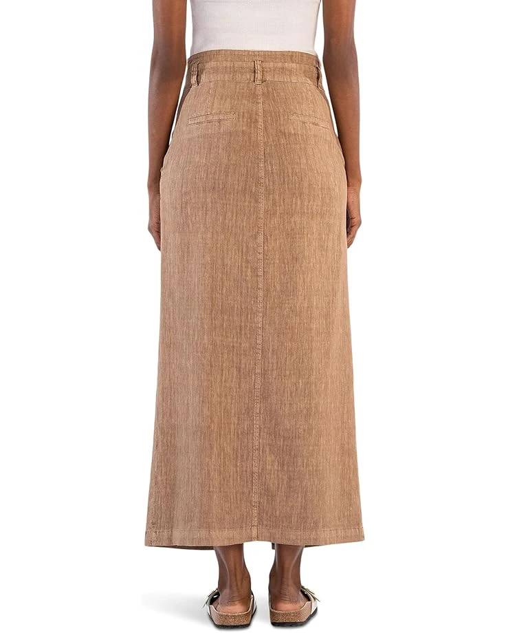 - Level up your style wearing KUT from the Kloth™ Freida-Front Slit Skirt! Embrace the high-rise chic, featuring a solid pattern for versatility. Ideal for mixed martial arts or any active occasion with its maxi length and easy zip-fly with double button closure. Complete with belt loops and four pockets for convenience and flair.