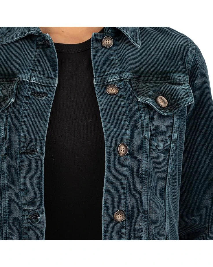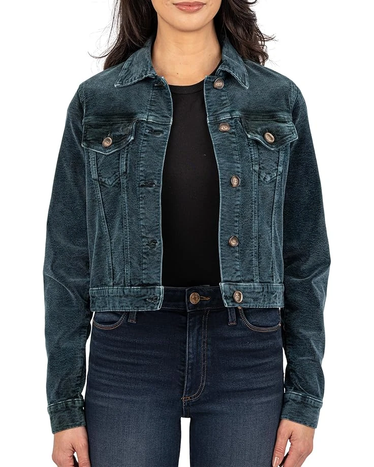 - Top your look off with the slightly cropped KUT from the Kloth™ Julie Crop Jacket With Fit Shoulder-Regular Waistband featuring two flap patch chest pockets with fit shoulder-regular hem, This denim jacket is styled with long sleeves, collared neckline, buttoned cuffs, and a straight hem. The buttoned front closure ensures easy wear. Style up your looks and outfits with this cropped jacket.