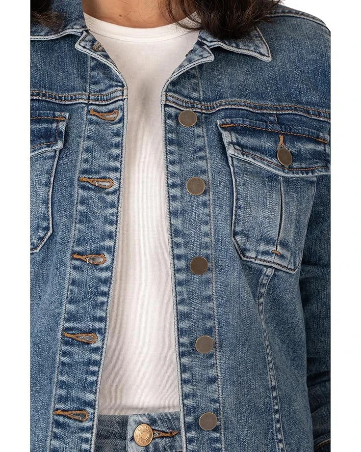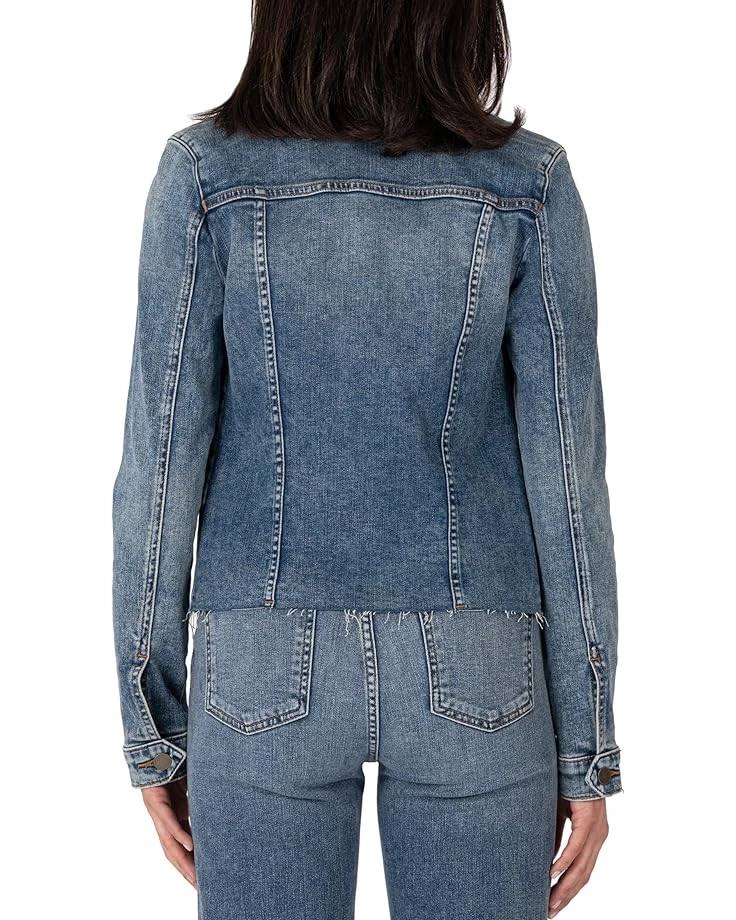 - Trendsetter alert: Elevate your style with effortless chic! The KUT from the Kloth™ Kara Jacket No Waist with Rawhem is a must-have closet essential. Featuring long sleeves, a button front closure, and a collared neck, it promises versatile elegance. The two chest flap pockets add a touch of utility, while the frayed hem and medium base wash provide a trendy, lived-in look.