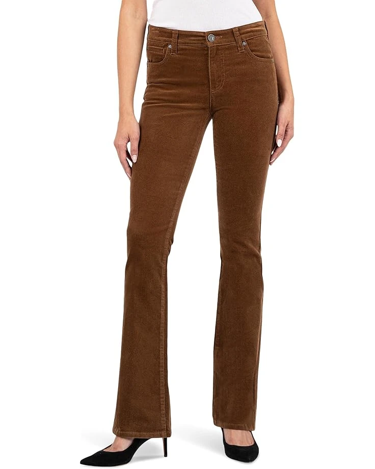 - Upgrade your everyday look with effortless style and comfort. The KUT from the Kloth™ Karen Baby Bootcut jeans feature a flattering high-rise waist and a classic bootcut leg, perfect for creating a sleek silhouette. Designed with a regular fit, these jeans hug your curves while offering all-day comfort. The five-pocket design and zip-fly with button closure add practicality, while the pull-on style ensures convenience. Belt loops provide versatility, letting you accessorize with your favorite belts. Whether you’re dressing up or keeping it casual, these jeans are your go-to for chic, laid-back elegance.