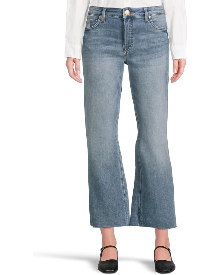 - Show off your style in a curvy silhouette of the super comfy KUT from the Kloth™ Kelsey High-Rise Fab AB Ankle Flare in Comprehensive jeans.