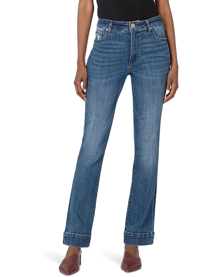 - The KUT from the Kloth™ Kelsey High-Rise Fab Ab Ankle Flare With Wide Hem is fitted through the hips and thighs and finishes off with a cropped kick flare for a modern take on the classic silhouette. The regular fit jeans are designed with a high-rise waist, zip-fly, and button closure on the front.