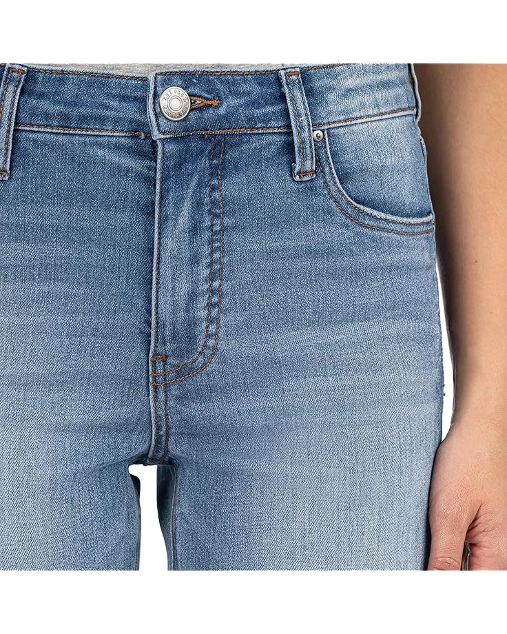 - Maintain your classic looks in the KUT from the Kloth™ Kelsey High Rise Fab Ab Ankle. These jeans offer a button front with a zip-fly closure, belt loop waistband, classic five-pocket, and a raw hemline.