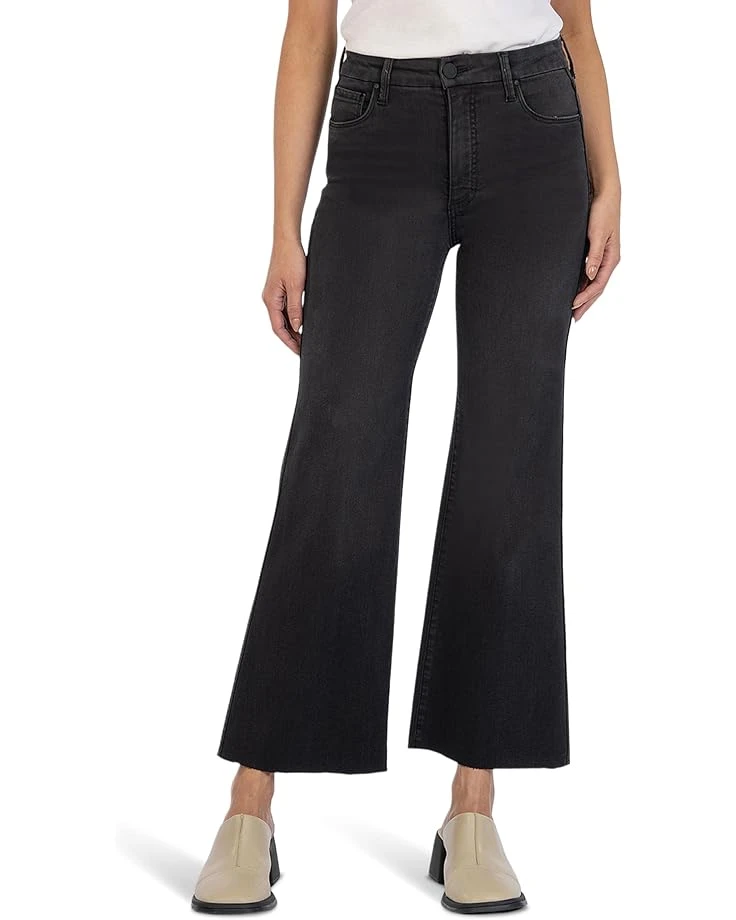 - Feel the goodness of comfort and effortlessly elevate your casual fashion statment wearing KUT from the Kloth™ Meg High-Rise Fab Ab Wide Leg Raw Hem in Experiences. The mid-rise jeans features a zip-fly and button closure, belt loops on the waist for a customizable fit, five-pocket styling, and a raw hem.