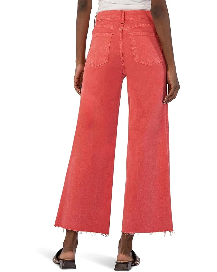 - Look and feel smart donning the KUT from the Kloth™ Meg High-Rise Fab Ab Wide Leg Raw Hem In Strawberry. The wide-leg pants feature zip-fly and button closure, belt loop waistband, and five-pocket style. Designed to be fitted through the hips and thighs.