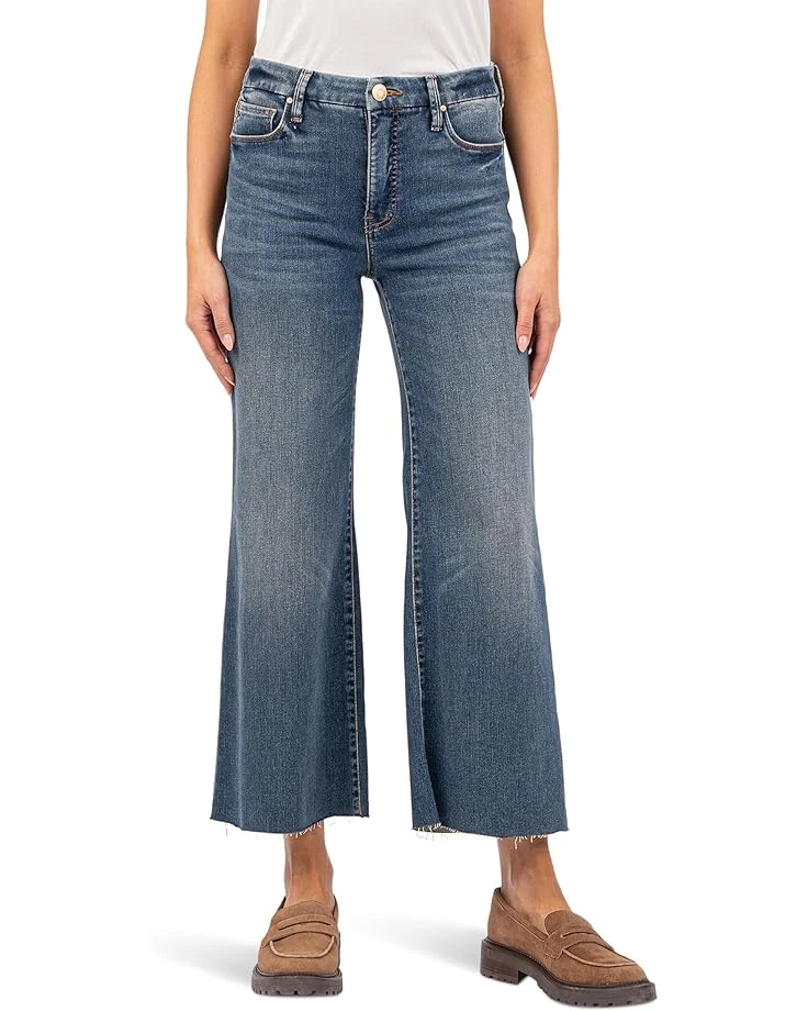 - Flaunt your laid back style in the KUT from the Kloth™ Meg High Rise Fab Ab Wide Leg Raw Hem jeans.