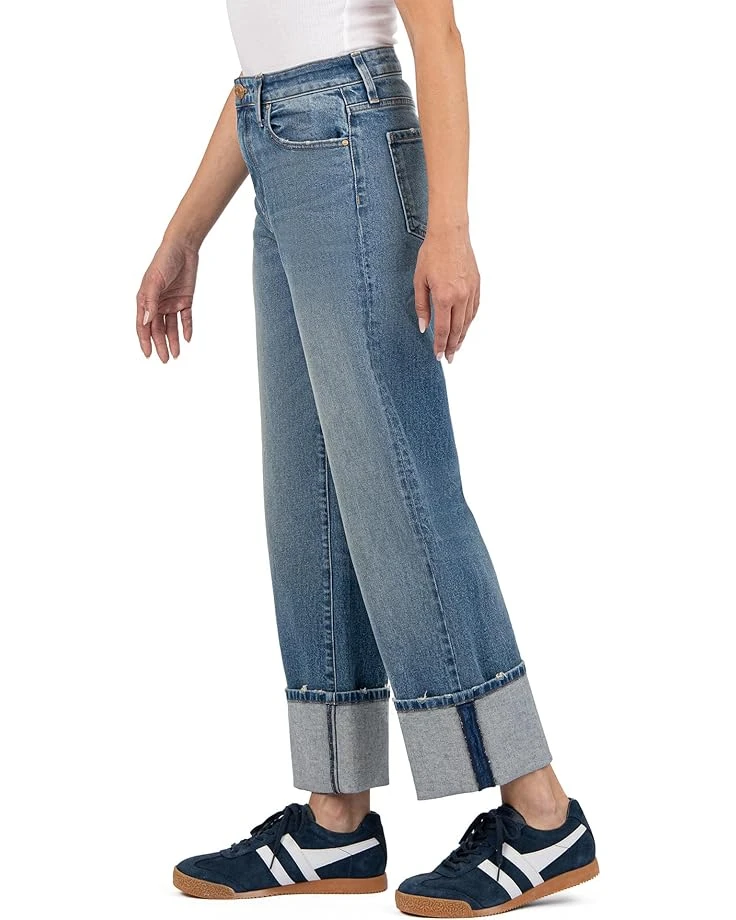 - Accentuate casual yet chic fashion vibes wearing KUT from the Kloth™ Sienna High Rise Wide Leg-roll Up 5″ Jeans. The pull-on style jeans features a high-rise waist with belt loops, a zip-fly & button closure, a five-pocket design, and a wide-leg style with rolled up hem.