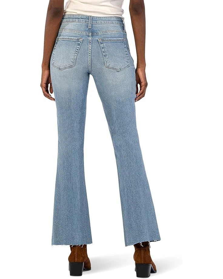 - Experiment with endless styles and steal the scene wearing KUT from the Kloth™ Stella High-Rise Fab Ab Flare W/ Raw Hem In Priorities Jeans. The bottomwear features classic five-pocket construction with a bootcut silhouette and belt-loop waist for additional functionality.