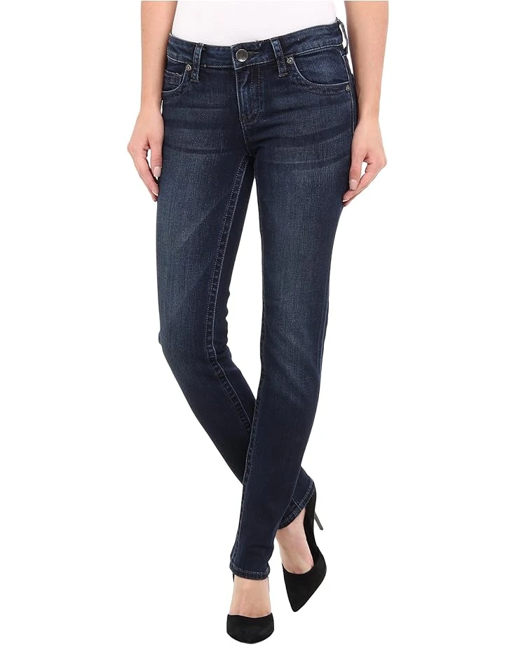These jeans took me many trials to find, because even though other Kut from the Kloth jeans say they are made of the same materials, in the same percentages, these feel much better, not so stretchy as the Stevie straight leg in Gratitude, or the black, those are both thinner and very stretchy, go figure! These, for me are perfect. Fit great, material feel is just right and the color is perfect.