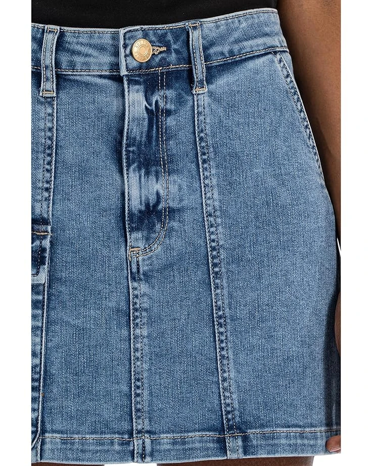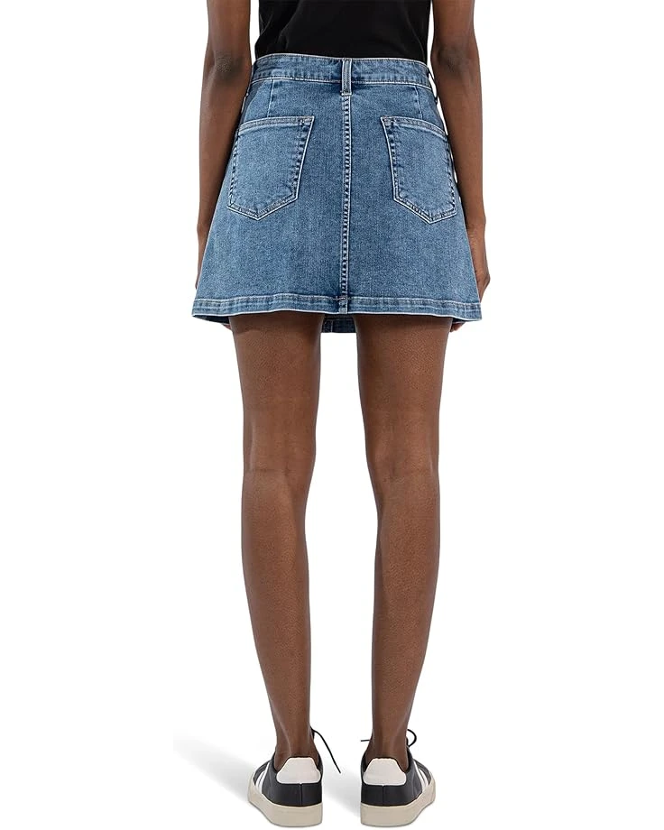- Add a fashionable twist to your outfits wearing the KUT from the Kloth™ Zoe Skirt Seam At Frt-Slash Pkt Slong Rt Btm Pkts jeans. The cotton blend fabric of these jeans offers superior comfort and flexibility while the mid-rise waist ensures a perfect fit. This denim skirt is finished with a zip-fly, buttoned closure, and belt loops. From matching your tank tops to styling up your casual looks, this mid-rise skirt is a great choice.